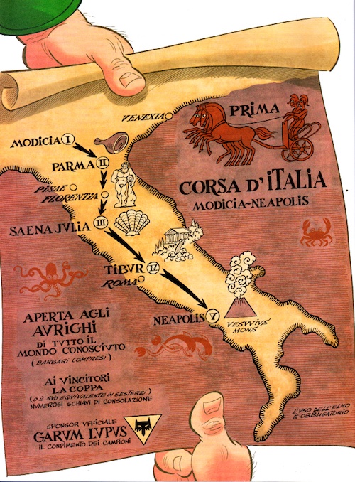 Or for example, when the pirates, entering the chariot race, stumble and take a wrong turn at Venetia (Venice), and end up in the lagoon.