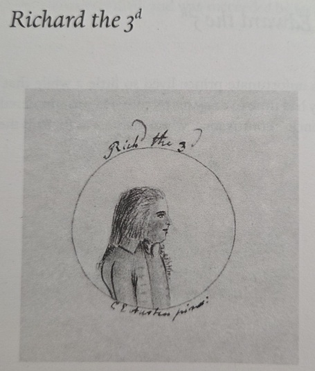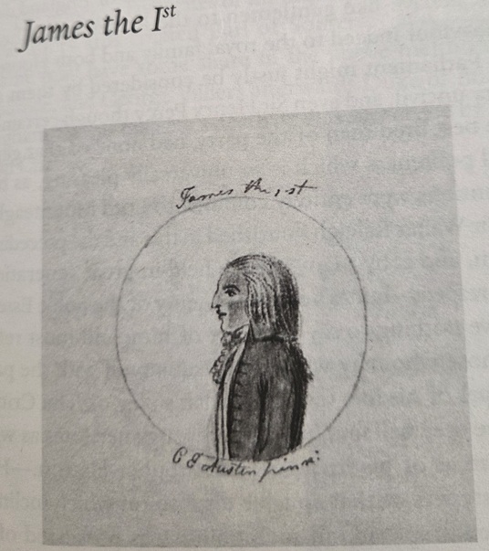 One of the most intriguing things about this book, is that Jane’s sister Cassandra did the drawings of the English Kings and Queens. They are also hilarious, reprinted below for your enjoyment …